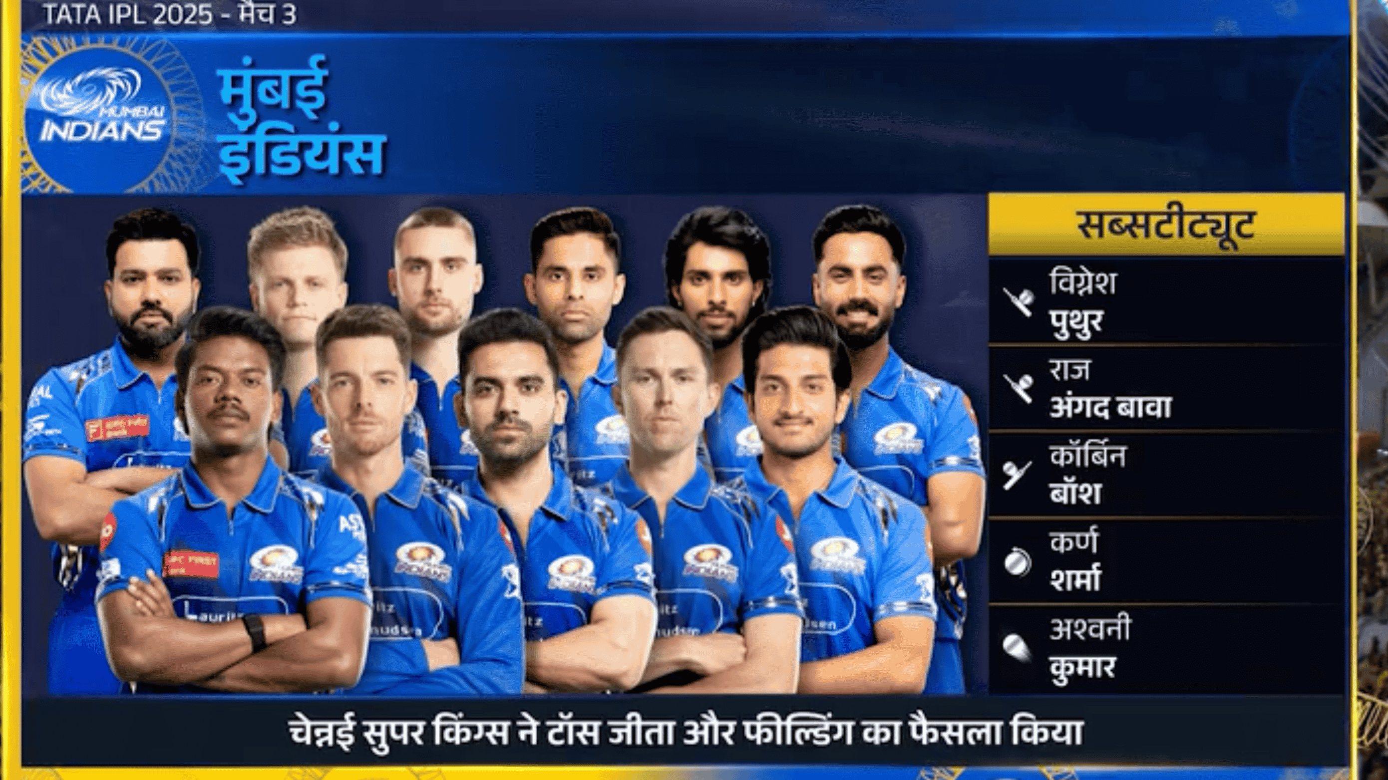 Meanwhile, MI faced a rocky start. With Hardik Pandya banned for this game and Jasprit Bumrah sidelined by injury, Suryakumar Yadav stepped up as captain. After a dismal 2024 (last place), MI brought in Trent Boult, Ryan Rickelton, and debutant Satyanarayana Raju to turn things around. However, could they crack CSK’s home fortress? Let’s see.